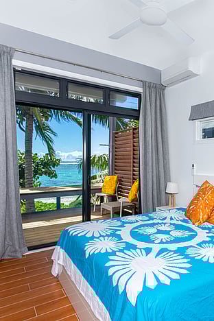 There are only two apartments, both are 138m2 and each with a fully equipped home kitchen. One is a two bedroom unit, the other contains a single bedroom with larger entertaining area and both apartments have two full bathrooms each. Whichever bedroom you sleep in, you'll wake up to the turquoise blue view over the lagoon.